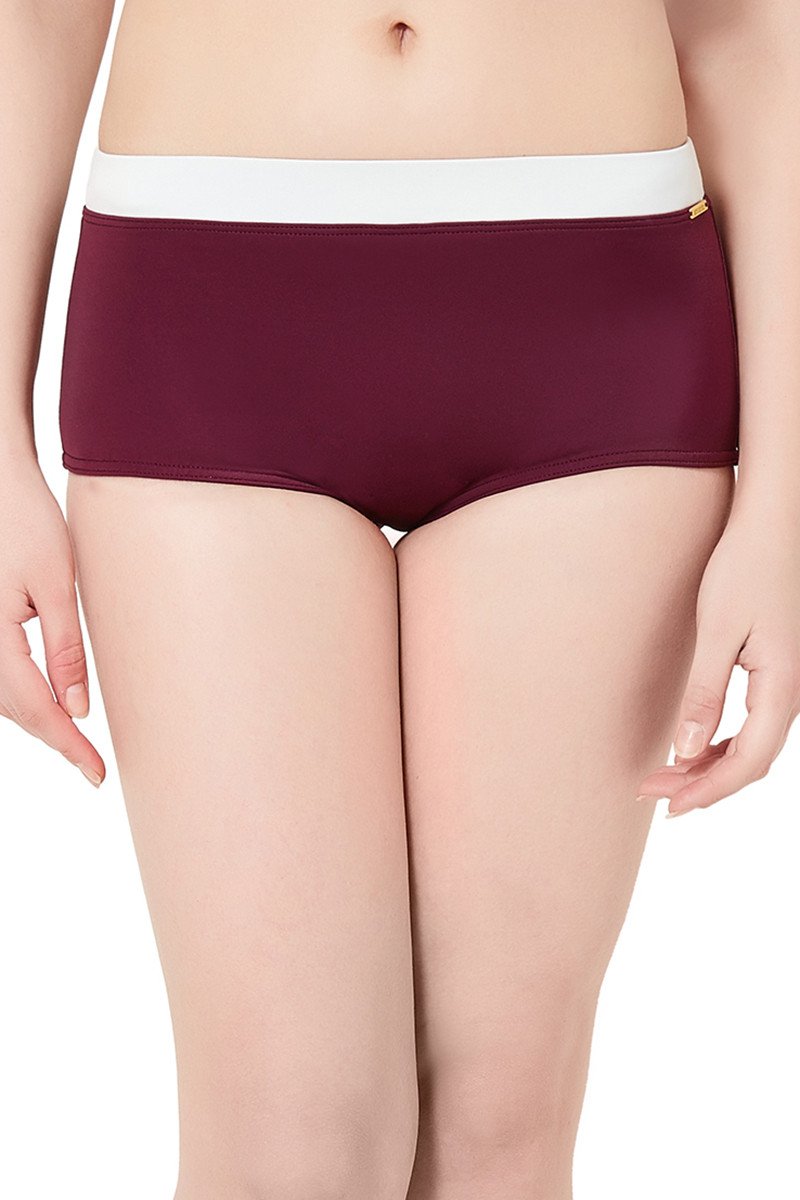 This trendy swim boyshort with contrasting waist elastic provides modest coverage. Pair it up with the matching ruched tankini to complete your outfit.