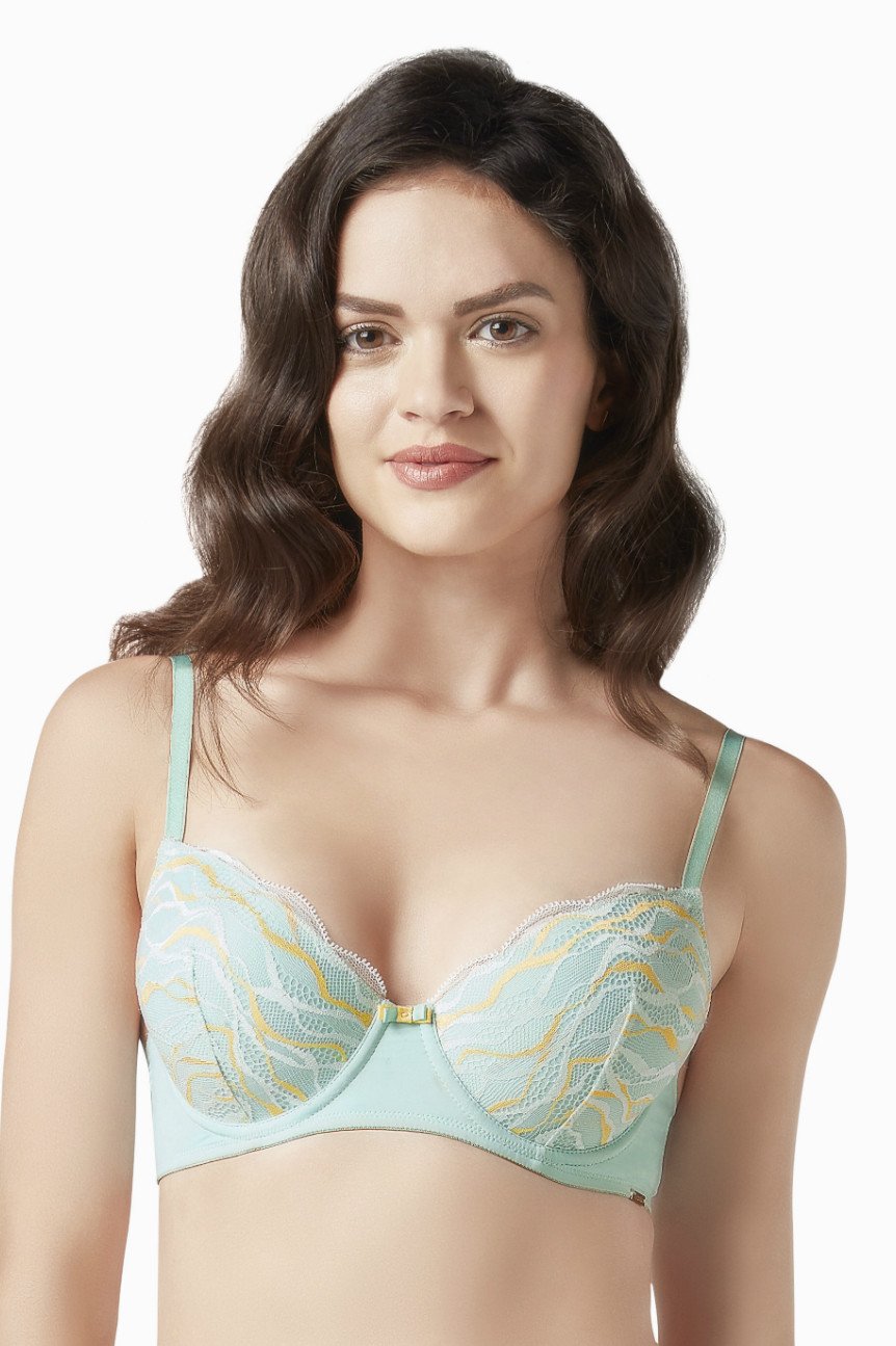With a two-tone bow and a delightful wavy pattern, reminiscent of the shifting desert sands, crafted in elegant lace, this padded, wired, demi bra is a fashion must-have for the wander- struck. Pair it with the matching brief for the perfect travel look